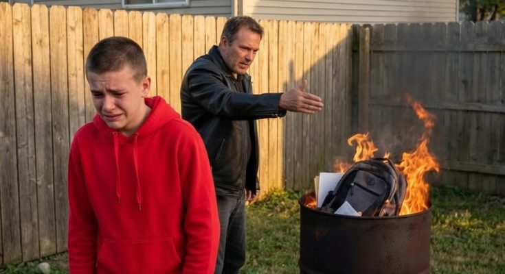 Not just a handful of shirts or a box of things from the garage. He dragged out my clothes, my notebooks, my work boots, my mother’s old coffee mug I had hidden in my closet, the framed photo from my high school graduation, even the secondhand laptop I had bought with money from roofing jobs that summer. He dumped it all into a metal barrel behind our house in Dayton, Ohio, and set it on fire like he was purifying the family name.