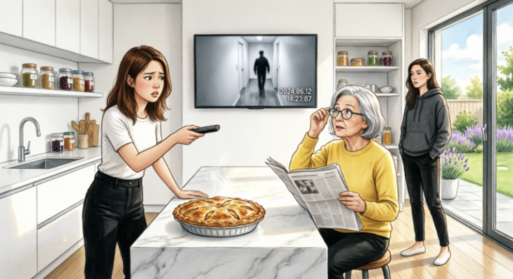 I slipped on a robe, turned off the main lights, and stood in the shadows of my living room. The city glowed behind the windows. My small bookshelf camera blinked a soft red dot, quiet and patient.